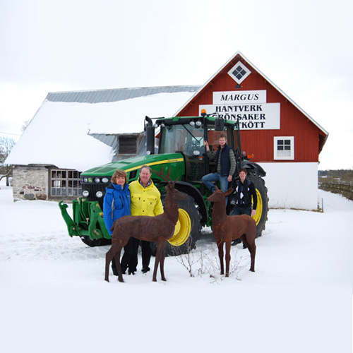 Vi är också lantbrukare med inriktning på mjölkproduktion. Lantbruksföretaget har våra 2 söner tagit över. På gården har vi också hjortar och vinodling. Vi tar även emot studiebesök.