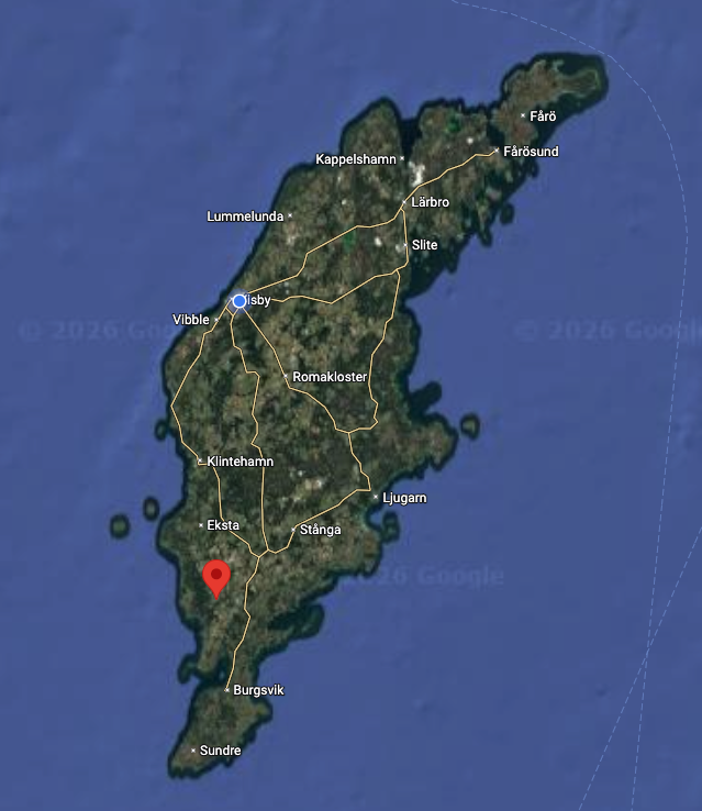 Ni hittar oss 6 mil söder om Visby, vid väg nr. 140 mot Burgsvik, 1 km söder om Hablingbo.